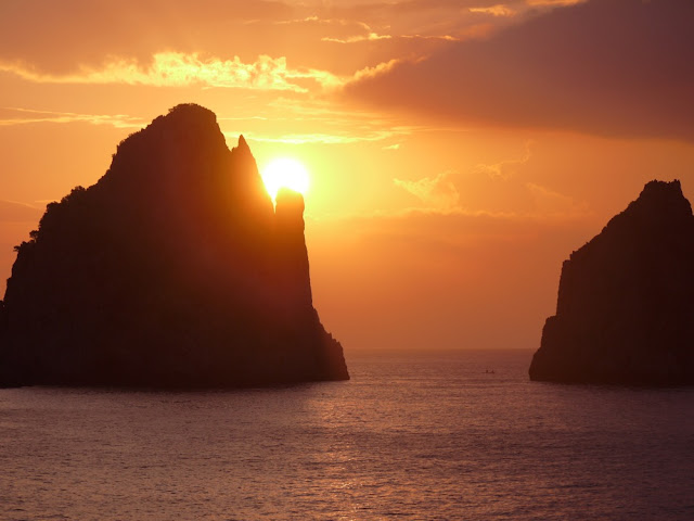 Faraglionis or sea stacks on the southern coast of Capri rise over 100 meters over the sea level.