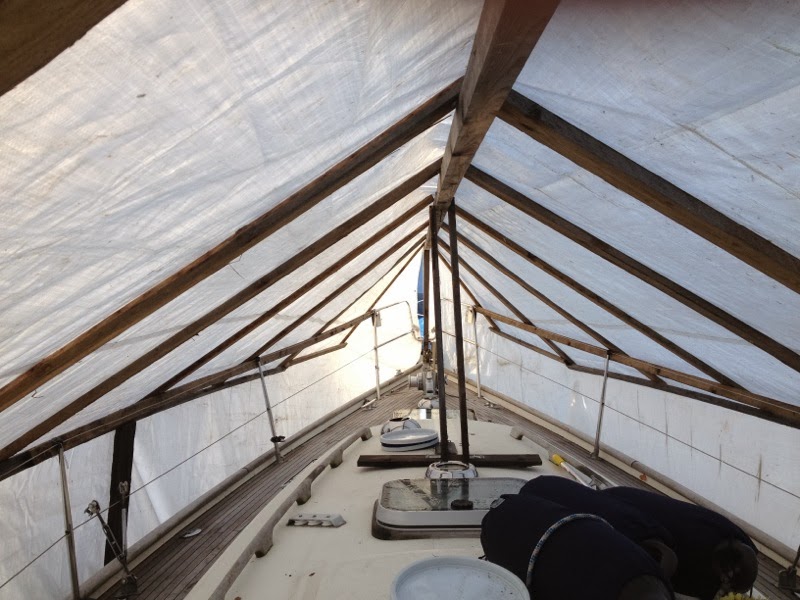 There is enough height under the tarpaulin, so that one can still work on the deck.