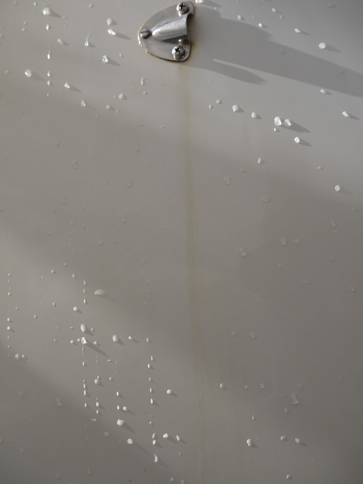 Removing the rust stain coming from anchor locher drain is a typical problem. The Hempel cleaning powder removed that pretty well (right pic).