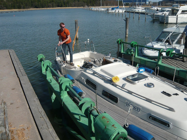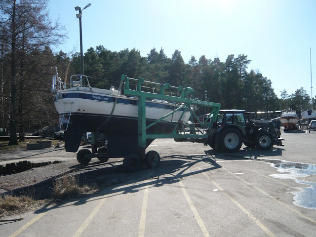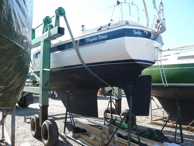 There are still plenty of things to do before Dolphin Dance is ready to sail. Next we are raising the mast and putting the sails on.