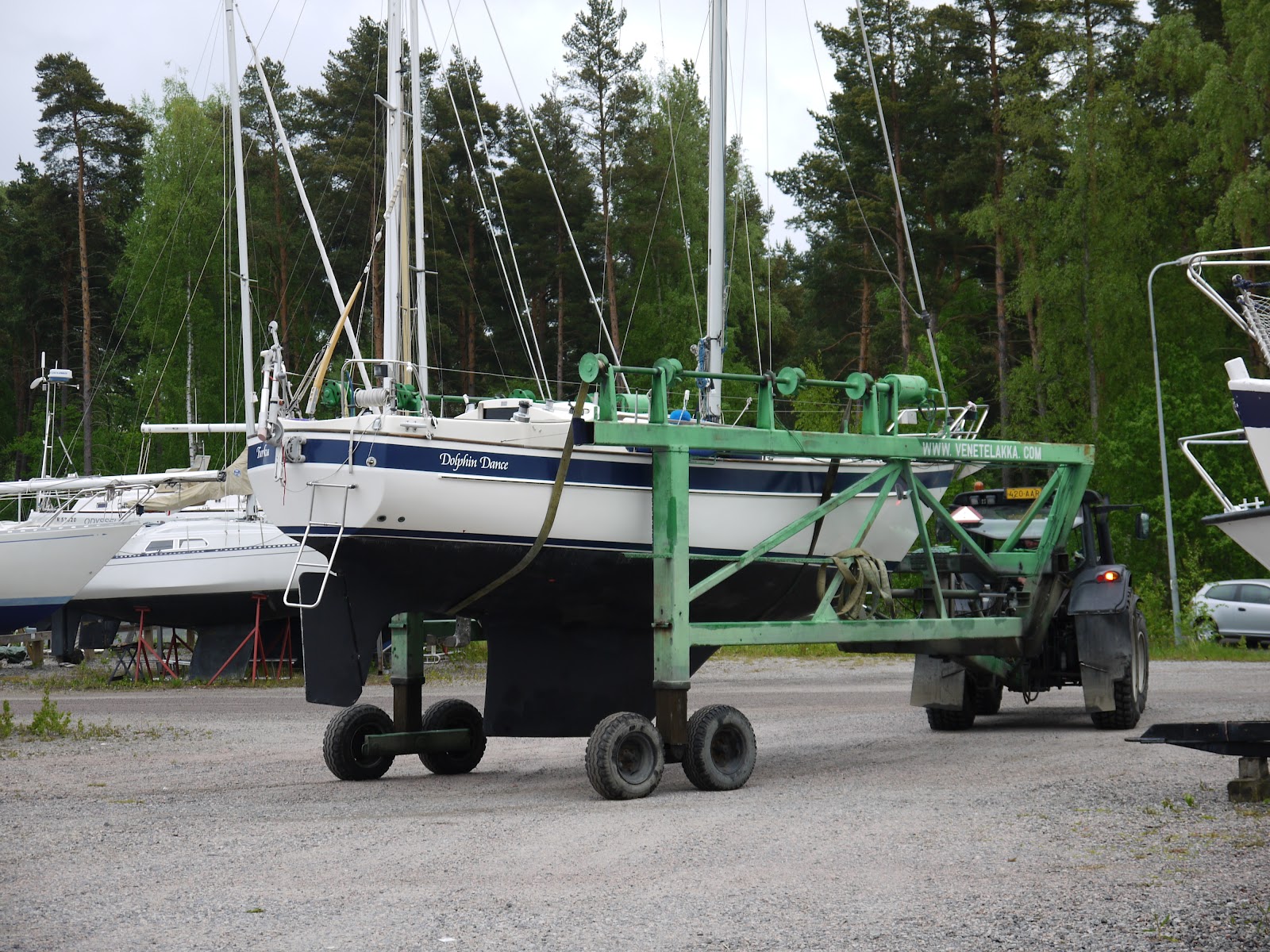 Dolphin Dance was launched on Friday morning. We spent the day loading a plenty of stuff to the boat as well as installing the main sail and the genoa. Our first sail of the season shall take place on Saturday. Unfortunately, the weather forecast is not that good for the weekend.