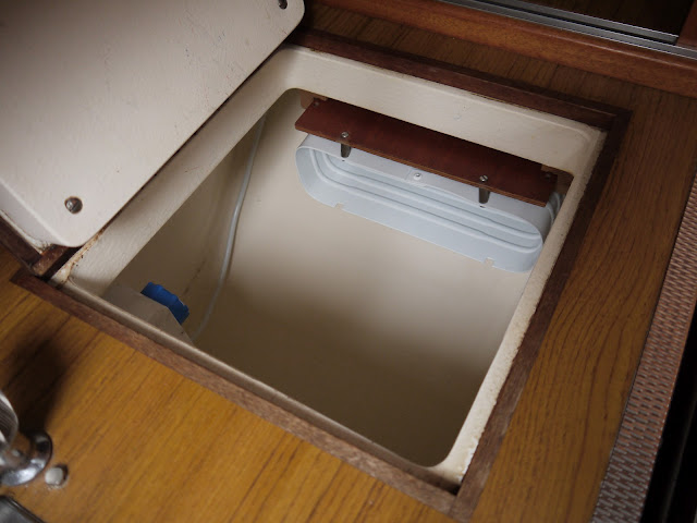 When the mast was standing, it was time to relocate the fridge compressor. As I wrote earlier, due to the misconception, the new fridge compressor was first installed vertically. Today we changed its positioning to horizontal and it seemed to be working ok.