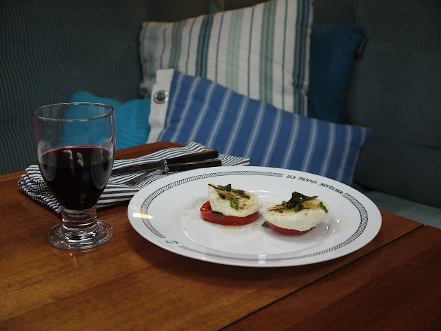 When one spends almost the whole summer holiday onboard, cooking good food onboard feels important. It keeps the spirits high and makes the holiday feel like holiday. Why spend the holiday eating only quick and easy dishes? With a little more effort one can create a lovely atmosphere onboard! For example, we grew our own herbs onboard: basilica, rocket (rucola) and chives were the basic ingredients for many dishes prepared onboard.