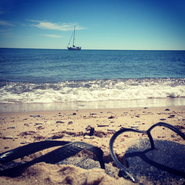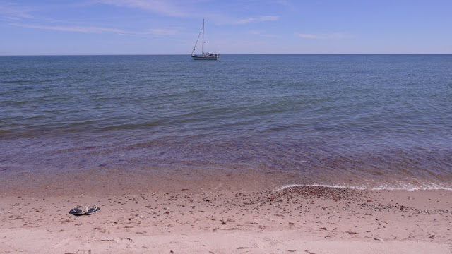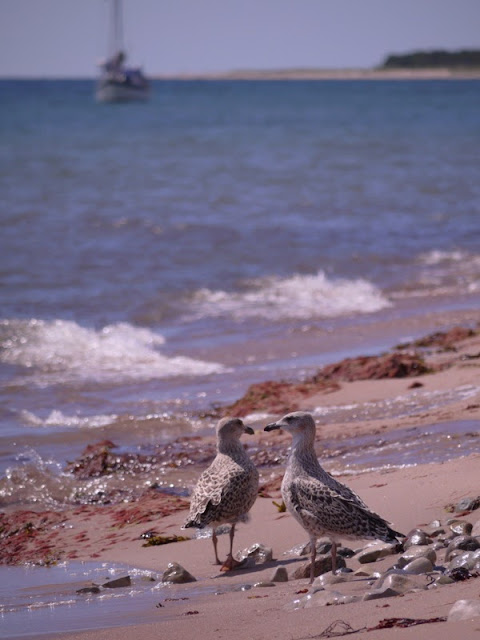 However, we spent the following day on the island and this pretty much made us forget the miserable night. It almost felt like coming to a tropical island when rowing the dinghy to the deserted sand beach. The warm and sunny weather did not do bad either! We walked along the kilometers’ long sand beaches which basically round the island. The island is 9 kilometers long and 6 kilometers wide, so walking to the other side would have taken a bit too long. We could not find paths going through the lush pine forrest to the middle part of the island either. The lighthouse and the camp site, where one can rent cottages, are located on the other side of the island. Also the tour boat coming from Fårö and Nynäshamn lands on the northern side of the island.