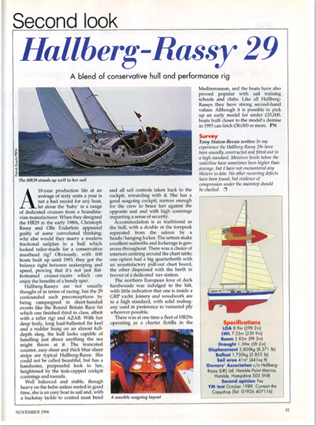 I agree, that an HR29 is an interesting boat to sail, in all but light winds. However, the boat in the test was equipped for the Round Britain Race and had a modified rig for masthead drifters. In general, the article should be considered in relation to the time when it was written, since boat design has developed quite a lot in the last twenty years – although, not all of the development is positive in my opinion. However, a modern boat of the same size would most probably have greater width, less weight, bigger downwind sail area, flat-bottom, shorter keel and a spade rudder. This will result in better performance especially in light winds and downwind. However, a traditional hull shape has other qualities: