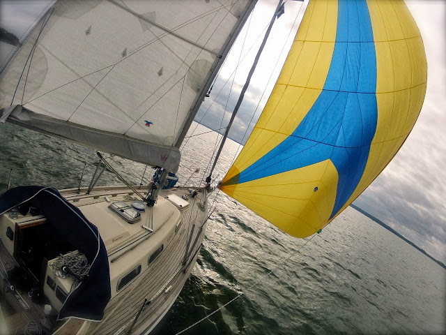We cast off on Sunday afternoon probably for the last night trip of this season. It is hard to believe, that only a few weeks ago we were wearing shorts and t-shirts while sailing. Now the day temperatures have dropped below 10 degrees, so it was time to find that woolen underwear, hats and gloves from the bottom of the locker. The wind on Sunday afternoon was mostly light, but we were not in hurry so we sailed almost the whole 16 nm distance to our boating club’s island base.