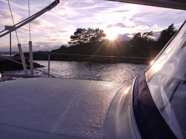 During the early hours on Monday morning, the easterly wind picked up, and since the harbour is open to east, the boat started rolling uncomfortably and making loud noises which made sleeping impossible. Adjusting the mooring lines did help to reduce that annoying squeaky noise, but we definitely have had better nights in the boat. I very much like the location and scenery of the club’s island base, but on the other hand, it is also less protected from the wind and waves of the Airisto. Also the swell from the large passenger ships, passing quite close by, round the island sometimes .