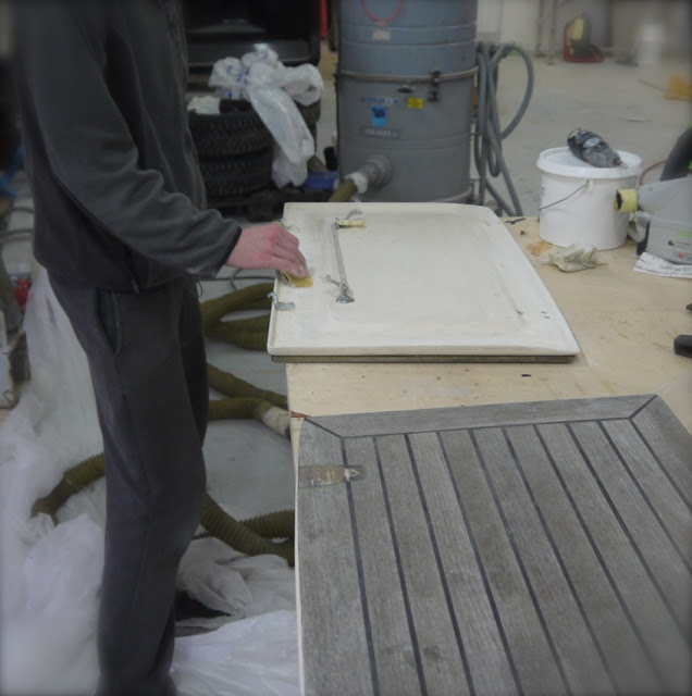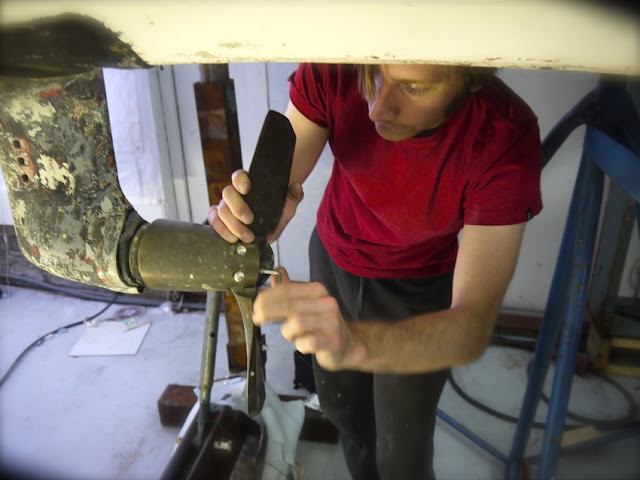 The propellor is now removed, since zinc anode needed to be changed. Also all the cockpit locker lids are now removed, since they need to have new seals. More about this later.