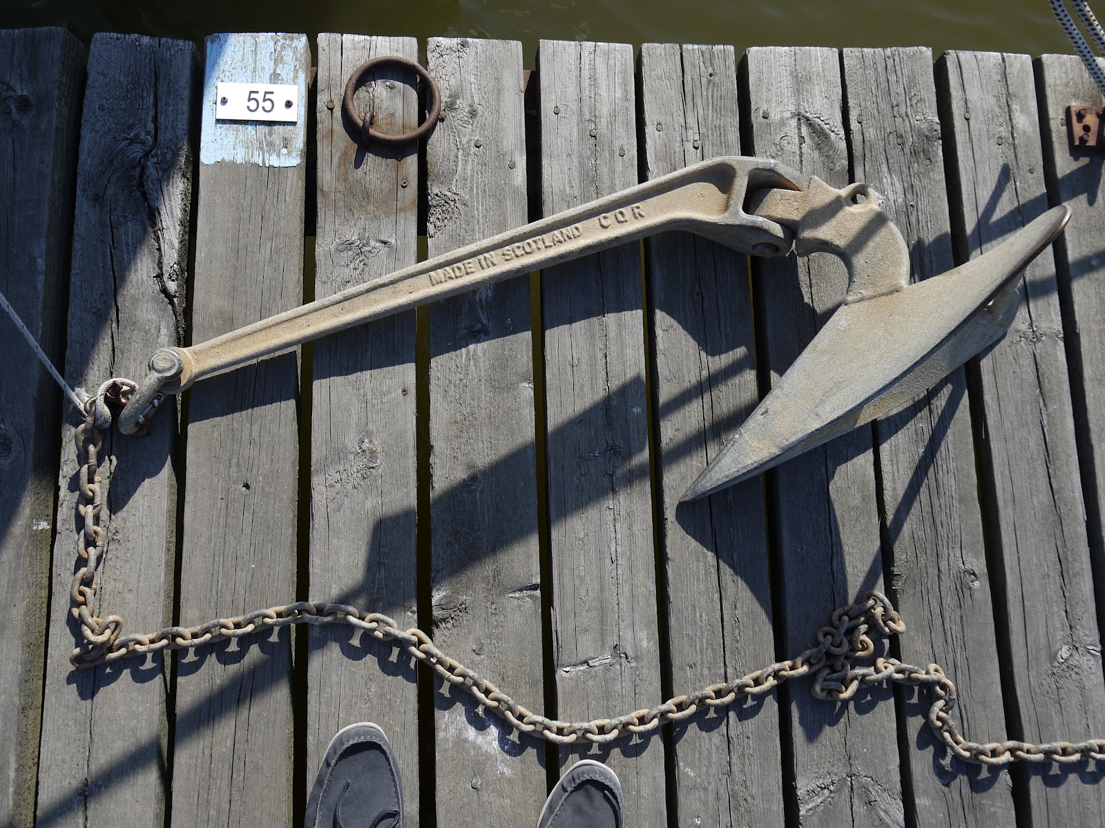 I wrote earlier a blog post on bow anchor selection. Last week I lowered the anchor and all the chain to the pontoon to check the condition of the chain and to improve the length markings. It turned out that the anchor chain was 40 meters long and not 30 meters as I had previously recalled. The chain weighs probably well over 1 kg per meter, so it is a heavy lump in the bow. Furthermore, I think that our 20kg CQR-anchor is a bit over-sized for a 29ft boat and it is often seen in boats over 40ft. Therefore I decided to order a new 10 kg Delta-anchor which arrived today, just in time.