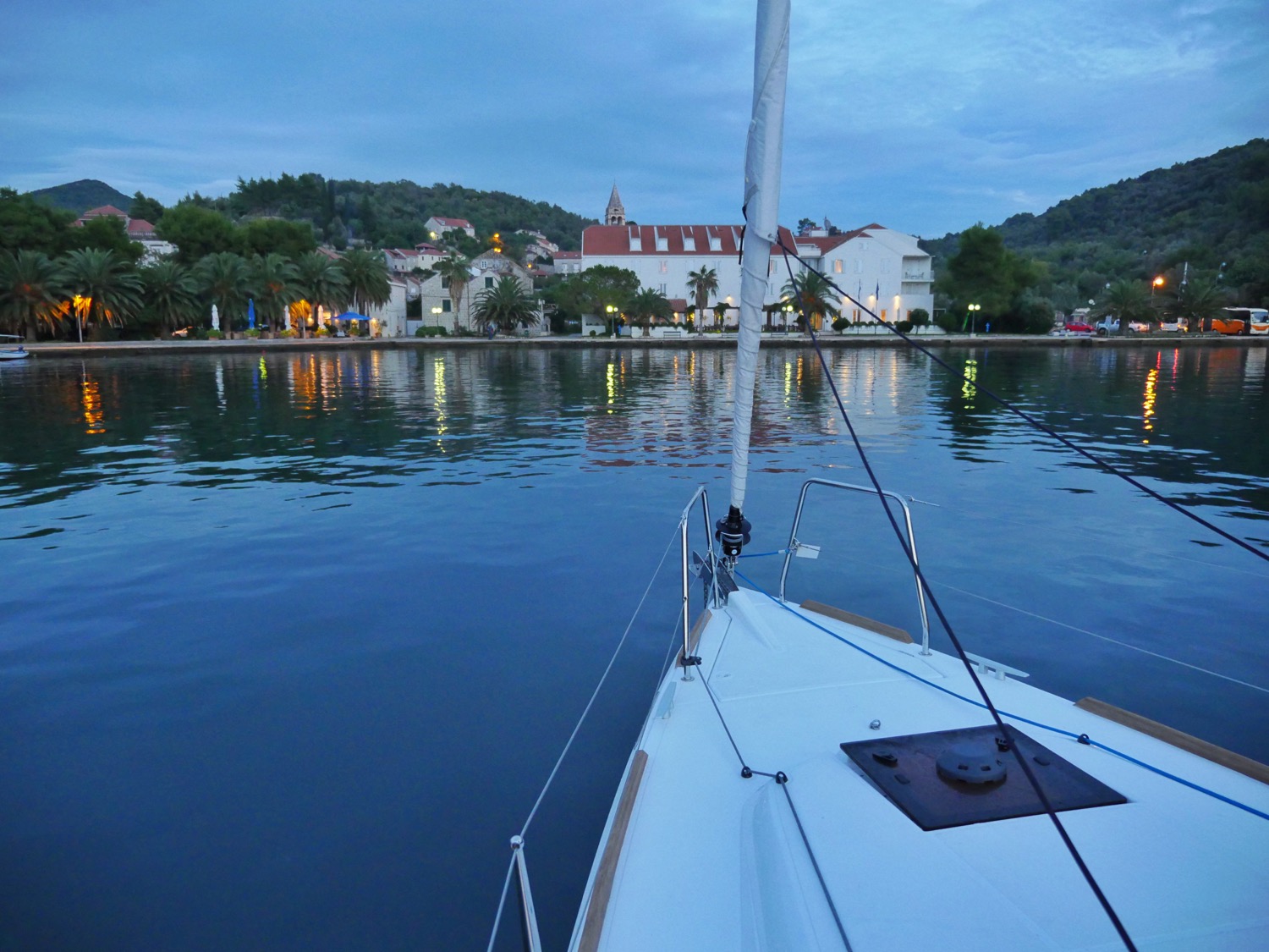 After rainy Monday, the weather took a turn for the better and we got two beautiful days at the sea. During Tuesday the wind was mostly light, so we motored most of the 23 nm leg from Sipan to Polace village on the beautiful Mljet island. In Luka Polace like in other small villages in the area, there seems to be a lot of private docks owned by local restaurants which you can use for free, if you promise to eat at the restaurant. Sounds a pretty fair deal to me given the high marina prices in the Mediterranean. Furthermore, the moorings also seem to have electricity and water available, so there is actually no need to stay in the marinas and pay those high prices.
