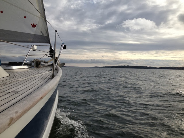 A week ago, I wrote that we were probably done with our night trips for this season. Fortunately, this turned out to be untrue, since on Monday afternoon, we (me and my father) decided to take the advantage of the nice autumn weather, and head out for one more night trip. We got a nice wind during the afternoon, but the wind faded away towards the evening so we decided to head for nearby Kaskis island. Located at Southern Airisto, Kaskis is a wild anchorage, which I had briefly visited just two weeks earlier. At this time of the year, most of the guest harbours are already closed and also our boating club’s saunas are already prepared for the winter. Therefore, we decided that we could very well stay in the wild anchorage as well. I guess that it is a very Finnish way of thinking: if you cannot use the sauna, why go there in the first place…