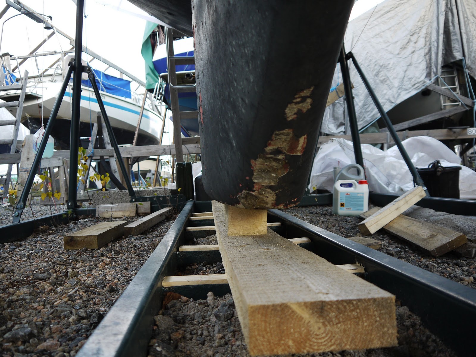 The scratches are opened and let to dry over winter lay-up before applying new layer of GRP