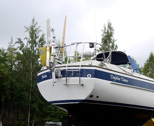 I would like to share with you a simple tip, which I heard from our club’s surveyor last spring. It is a fairly common problem, that the boarding/swimming ladders of boats with, more or less, vertical transom tend to fall down when the boat is heeling and banging to the waves. Thus, it might be tempting to tie the ladders to the aft rail, so that you do not have to lift them up from time to time. At least, I have had this problem with both of the boats, that I have had.