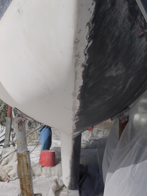 In general, I am very pleased with the outcome since the surface is mostly ready for applying epoxy coating after just some light sanding. At some places, where the glass bead blasting was used, some filling and fairing with epoxy is required before applying a new barrier coat.