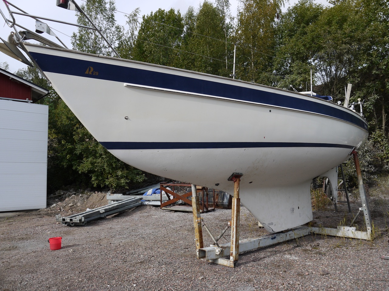 I actually started scraping off old bottom paint from the keel last autumn, but soon it became evident, that it would take ages to clean the whole bottom this way. Hand scraping the bottom during the dark November evenings did not sound too tempting either. Furthermore, it is very important that the hull has enough time to dry before applying new epoxy barrier coating. Thus, old bottom paint should be preferably removed already at autumn.