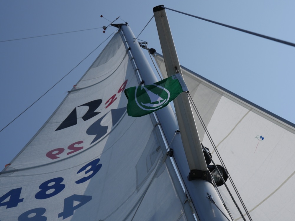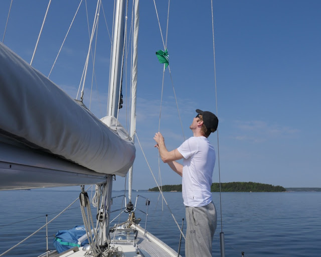 Hoisting the green pendant at the starboard spreader for the first time. This means that I got accepted as a member in the Finnish cruising association Merikarhut-Sjöbjörnarna (‘Sea Bears’)