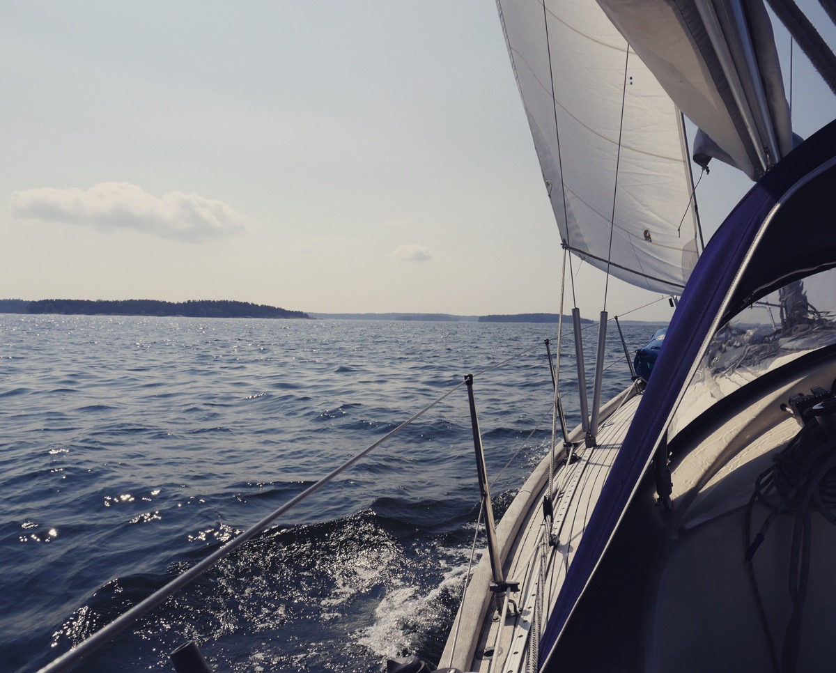 This year Dolphin Dance was launched on Monday the 16th of May and the sails were hoisted for the first test sail on Friday. Here are some photos of the long-awaited first sail of the season. The weekend was sunny and warm, but the (head)winds were mostly light, so together with my father, we decided to take a relaxed schedule and stay in the home waters. Nevertheless, it felt great to be back at the sea after the long winter!