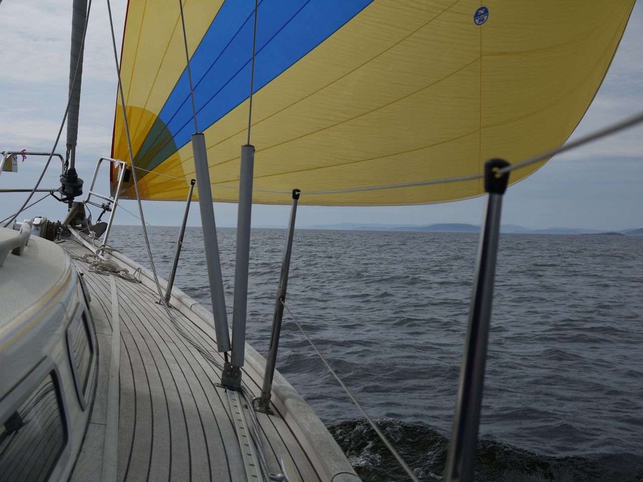 On Saturday, we were prepared for the forecasted rain, but fortunately it never came. Actually, the weather was very good: warm, and even the Sun shined for a couple of hours. The wind was mostly light, but we got a change to hoist a gennaker for the first time this season, and enjoy some relaxed downwind sailing.