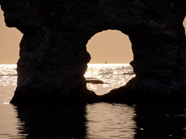 During the journey, we have been talking a lot about how different and interesting landscapes and places one can find from the Baltic Sea within just a few hundred miles. From Visby we continued to the Fårö island, located just a mile north from Gotland. I had visited this island in 2010, and instantly fell in love with its beautiful beaches, tranquil athmosphere and many amazing limestone formations, which are called rauks. This year, we visited the island first by car, and later in July, stayed also two nights on the island in Lauterhorn harbour. During our stay in Lauterhorn, we rented bicycles and drove to see the Gamle Hamn rauks in the evening. The weather turned cloudy in the evening, so we missed the famous sunset of Gamle Hamn (the sun setting through arch of the Coffeepot rauk) that we were looking for. However, an approaching weather front gave a dramatic scenery for the place.