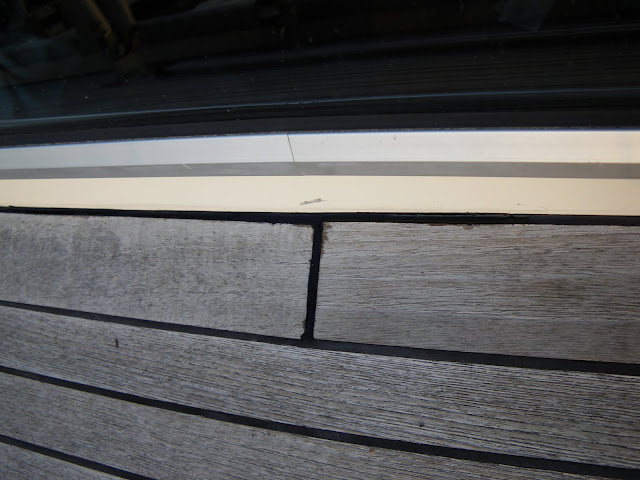 Teak deck on Dolphin Dance was replaced about four years ago by her previous owner. The new deck is glued so there is no screws going through the deck anymore. Despite our deck is relatively new, some parts of the caulking needed to be re-done during the season. For the longevity of the teak deck, it is important to keep the deck watertight and fix the problems rather sooner than later. Leaky caulking can be detected by hosing the deck and observing for seams that stay wet longer than the surroundings. I have used the following method for quick-fixing the leaky caulking: