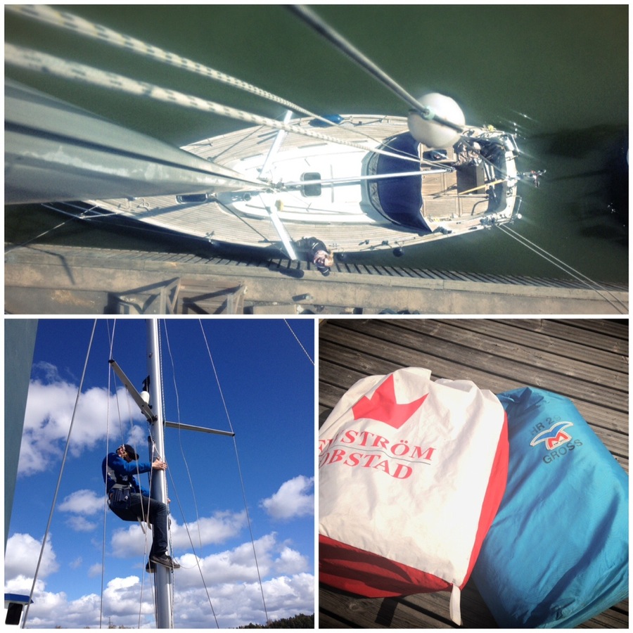 Sunday wasn’t much better in terms of weather as it was cold and raining most of the day. However, the sky cleared for the evening and we had a nice but chilly evening sail. When installing the sails, we discovered (or actually remembered from the Autumn) that the main sail’s stack pack was a bit torn and needed some repairs. It is interesting that there has been over six months to take care of the bloody thing, but it is in the beginning of the season that things like this happen to cross your mind. Thus, we decided to leave the main sail in its sack, and sail with the genoa only.