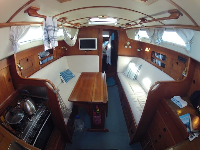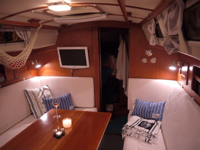 When planning to order the new cushions, we got a lot of advice that it might be difficult to keep the light coloured ones clean. However so far, we have not had problems with that. Maybe we have just been extra careful during the first year. Furthermore, especially when sailing or dining, we tend to use additional blankets to cover the settees.