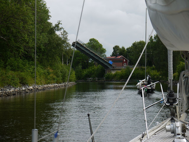 On Saturday, we continued from Öregrund towards Stockholm. We motored through the Väddö Kanal, which is a quite narrow canal in the northern archipelago of Stockholm. In the first quarter of the waterway (when coming from the north) there is one 17 metres high bridge and in the canal there are two lower bridges, which are opened once in an hour for ten minutes’ time. Bagghusbron, in the southern part of the canal, is opened half past the full hours between 7.30 and 21.30. Älmstabron, the northern bridge is opened every full hour between 7.00 and 22.00.