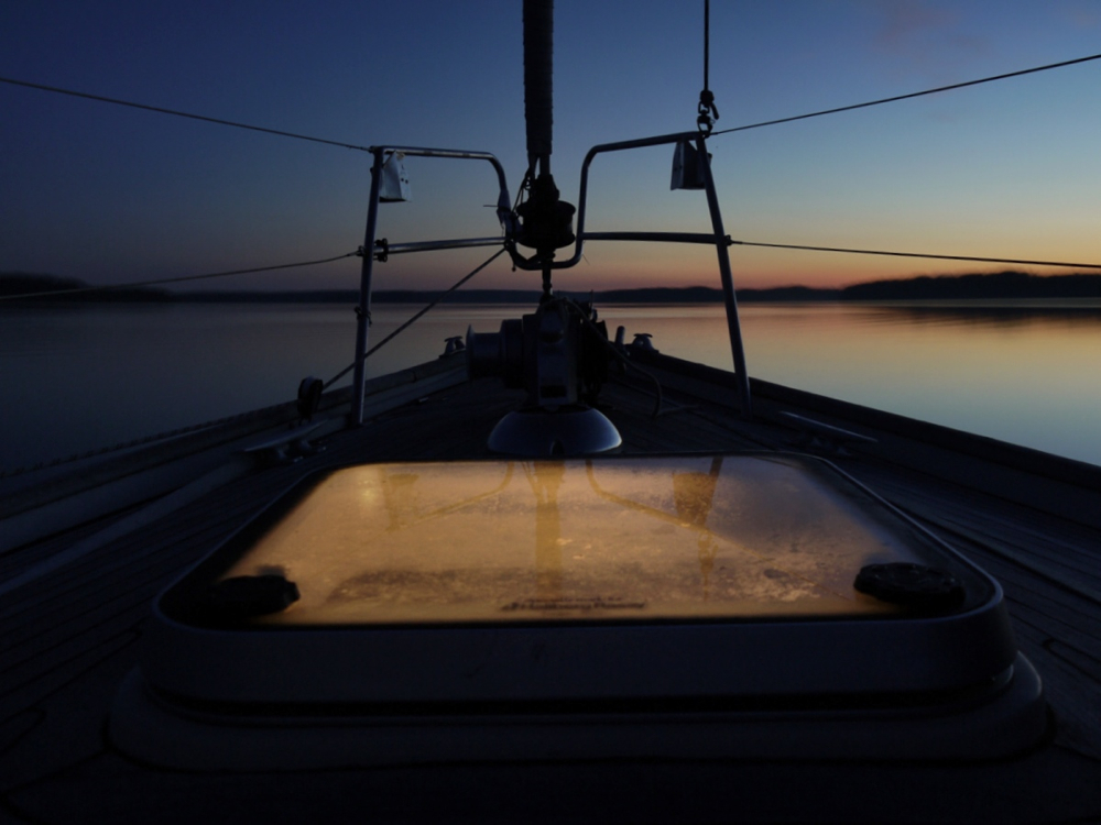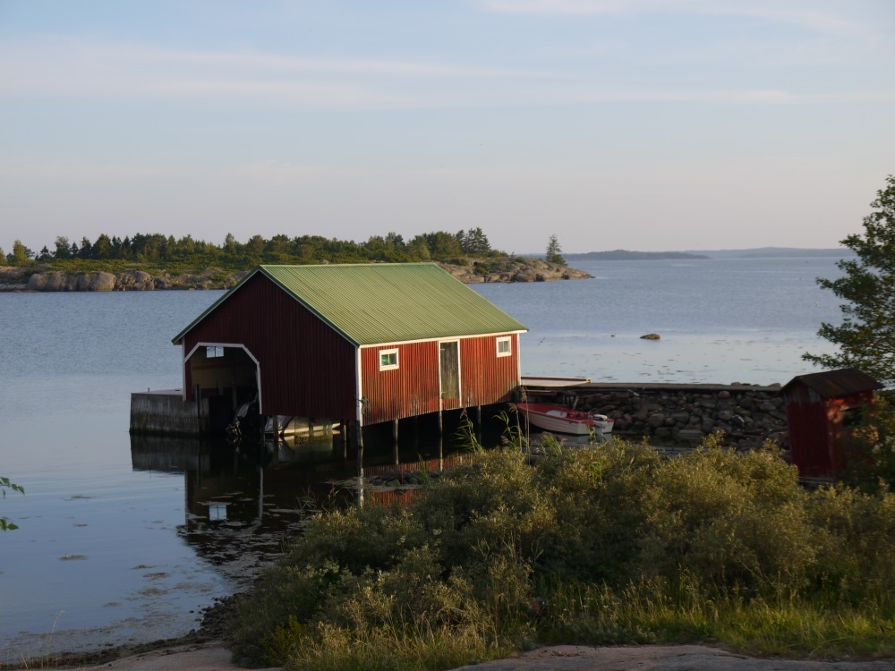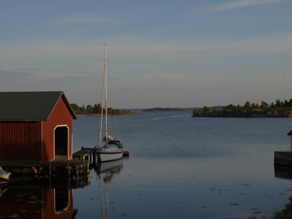 We decided to give it a go, and motored very slowly the last mile. I think that our echo sounder did not show depths below 2,4 meters on the way, but the waters near the visitor quay were quite shallow. Dolphin Dance draws 1,6 meters, but the echo sounder was showing about 1,5 meters near the quay. Still we were somehow able to proceed forward and reach the quay. The evening in Simskäla was totally calm and quiet. Despite the high season, there were no other boats in the harbour. The time seemed to have stopped beating and the quietness of northern Åland felt magical.