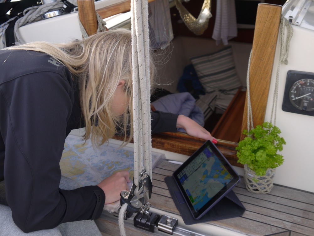 After the lunch we continued to northeastern Åland. The northerly wind increased towards the evening, so we started looking for suitable anchorages or harbours from the area. However, the new Åland harbour guide, which we had purchased from Mariehamn, did not give too many options for that area. Fortunately, Mr. Google found an article by boating magazine Vene about Simskäla, which should have a visitor’s berth, accessible also with a small sailboat. However, the problem was that waters near Simskäla were not charted – only the rocks appeared to be on the chart, but the depth markings were missing.