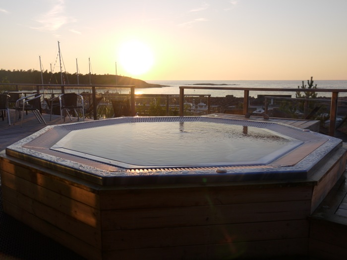 HavsVidden has a unique location in the northern part of Åland. There are not too many locations in this part of the Baltic Sea where one can see the Sun setting in the sea without any islands in the horizon. I guess that the number gets quite small when taking into account the places where one can do that while sitting in a jacuzzi.
