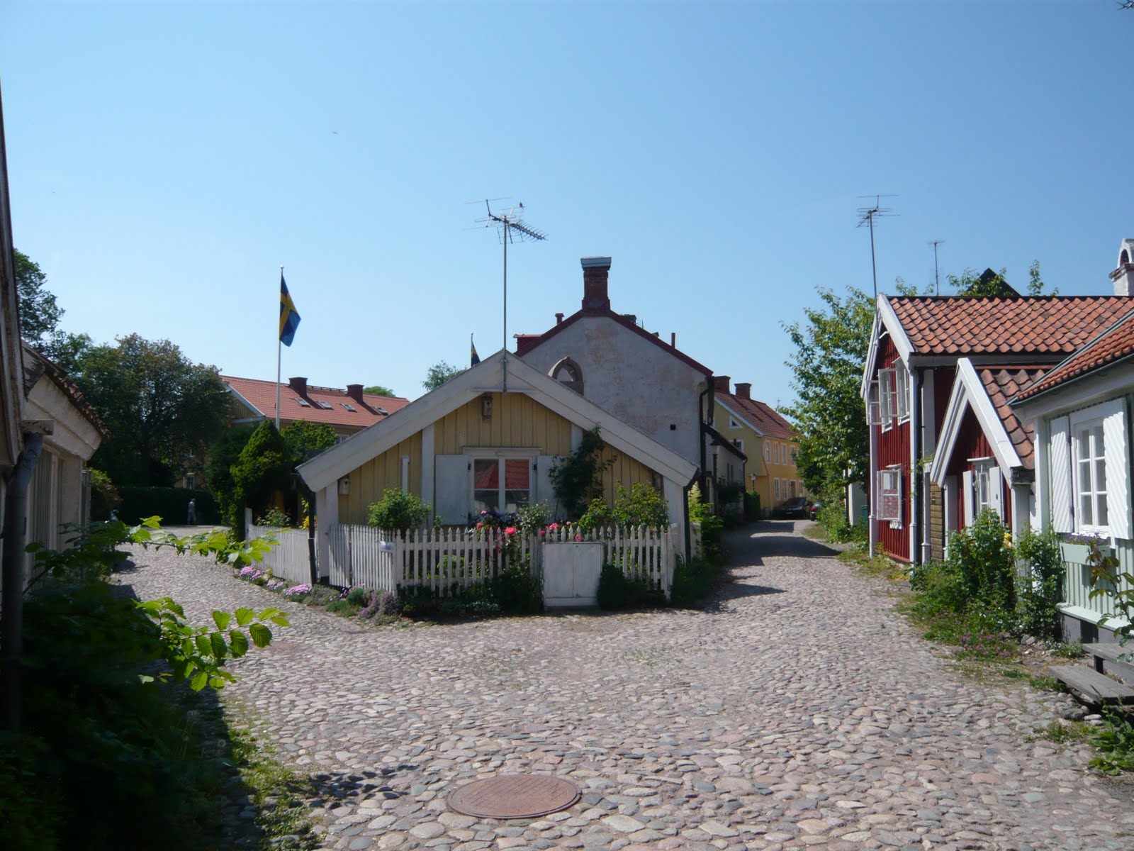 As mentioned, when we sailed from Borgholm, Öland, back to the mainland Sweden, we sailed underneath the huge Öland bridge and we passed Kalmar town and kept sailing towards south. On Monday, it was time for me to leave for home. Early in the morning, I left Antti and S/Y Dolphin Dance in Bergkvara and took a bus to get to Kalmar town. It took about an hour and then I had the whole day to walk around the city. Kalmar is a beautiful but small city of 35 000 inhabitants. Monday was the National day in Sweden so there were a lot of people outside enjoying the weather. It was really hot, even more than 25°C, I think. The old town was pretty idyllic and there were a lot of old buildings around the town.
