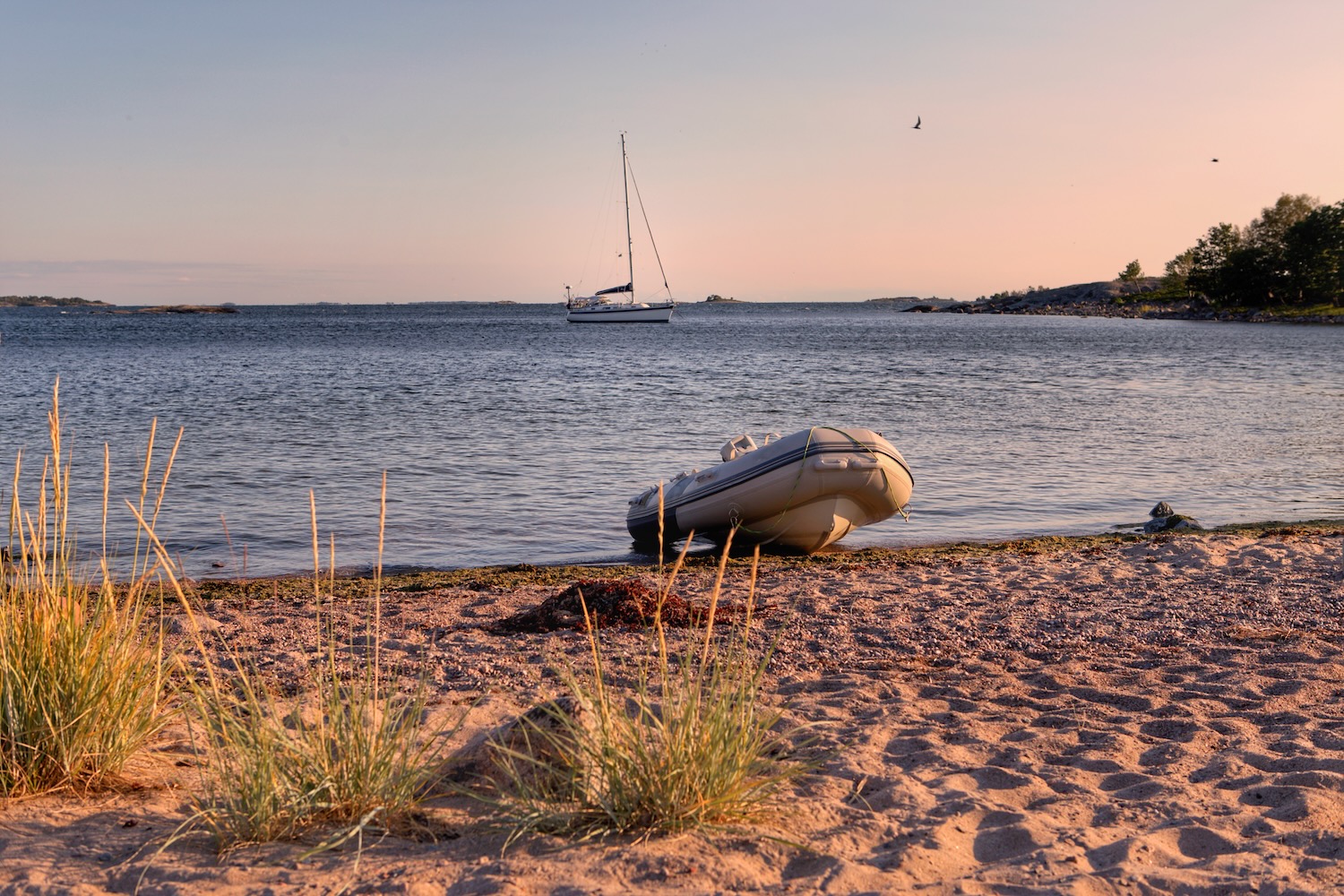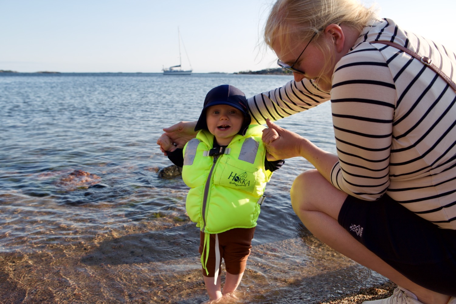 Kråkskär, located in the southern part of the Archipelago National Park (⚓️ 59°58,40′ N, 22°02,65′ E) was a new anchorage to us, but instantly became our favourite. The surroundings are very beautiful and the sandy beach on the bottom of the small bay is great. The northwesterly wind was gusting +20 knots when we arrived there. The island gives fairly good shelter from the swell from that direction, but the tip of the island is low-flying, so the protection from the wind is not that good. There are some mooring loops attached to the rocks, but we decided to use our bow anchor instead and use the dinghy to explore the island.