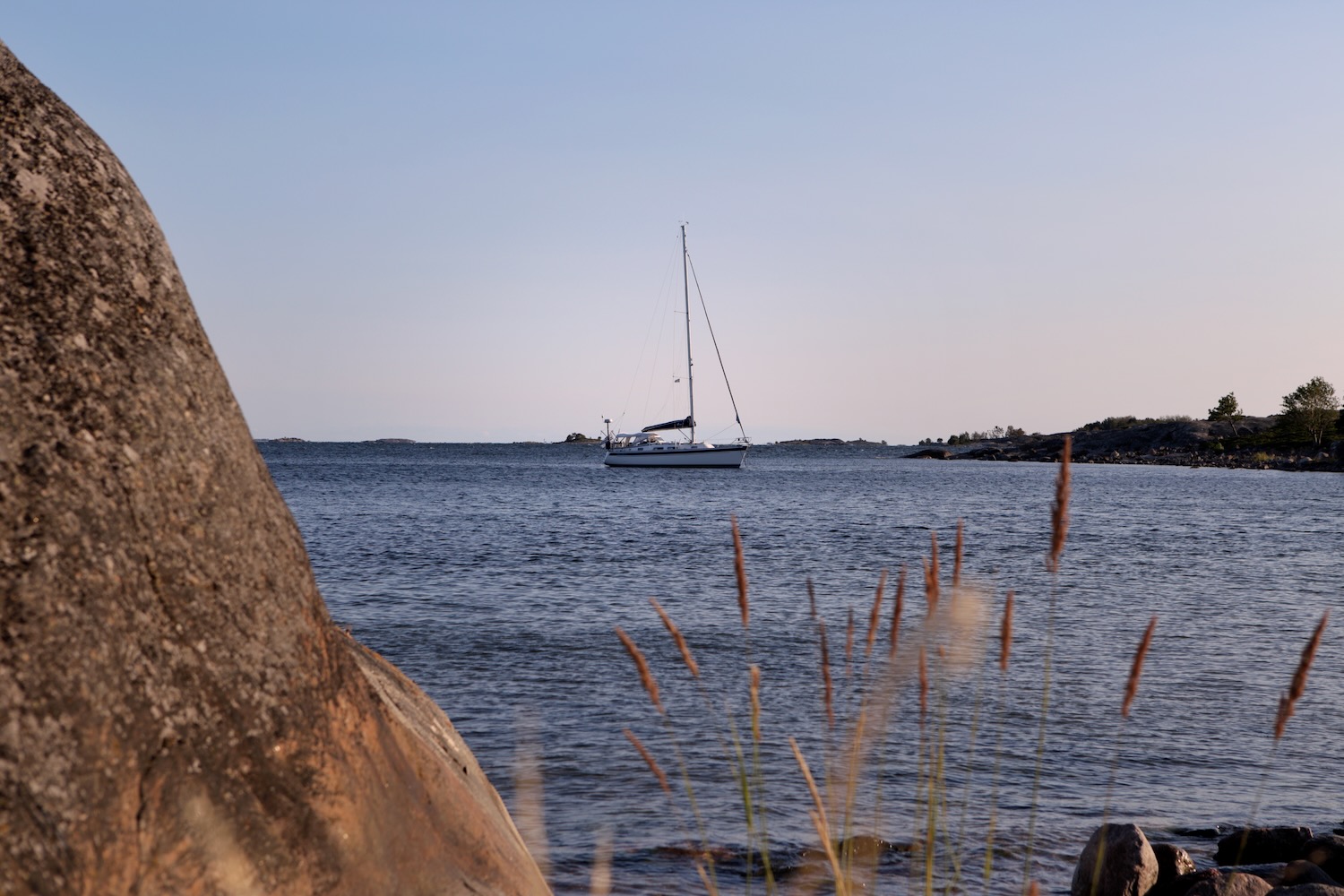 Kråkskär, located in the southern part of the Archipelago National Park (⚓️ 59°58,40′ N, 22°02,65′ E) was a new anchorage to us, but instantly became our favourite. The surroundings are very beautiful and the sandy beach on the bottom of the small bay is great. The northwesterly wind was gusting +20 knots when we arrived there. The island gives fairly good shelter from the swell from that direction, but the tip of the island is low-flying, so the protection from the wind is not that good. There are some mooring loops attached to the rocks, but we decided to use our bow anchor instead and use the dinghy to explore the island.