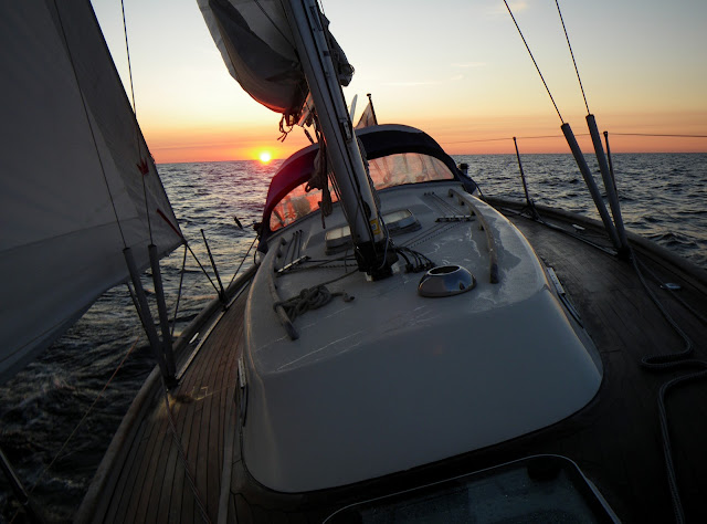 Sunrise at Northern Baltic Sea. Singlehanded sailing towards Visby (June, 2010)