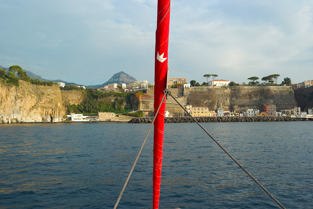 On Sunday, we opened up with about 18 nm leg across the Gulf of Naples towards Piano di Sorrento/Marina di Cassano. The wind was mostly light, but it increased during the afternoon to about 8-10 knots, so we had a chance to sail for an hour or so.