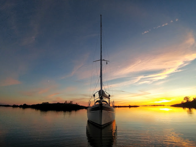 Found a quiet anchorage in the outer Stockholm Archipelago (not that easy in July).