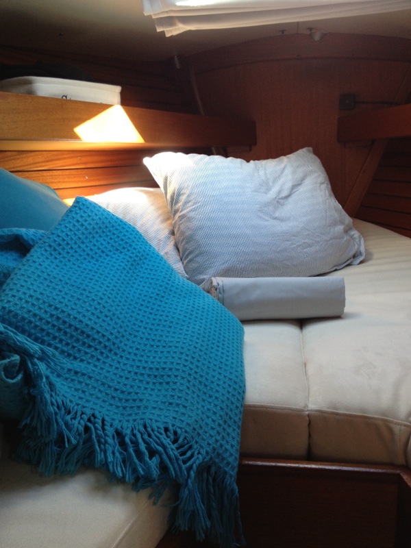 I blogged last spring about our plans of renewing the mattresses for this year. However, I just realized that we have not yet posted any images of the outcome. So here they are, a couple of photos of Dolphin Dance’s new light coloured mattresses, which to be exact, are not that new anymore, since they were delivered in the spring, just in time for the first sail of the season.